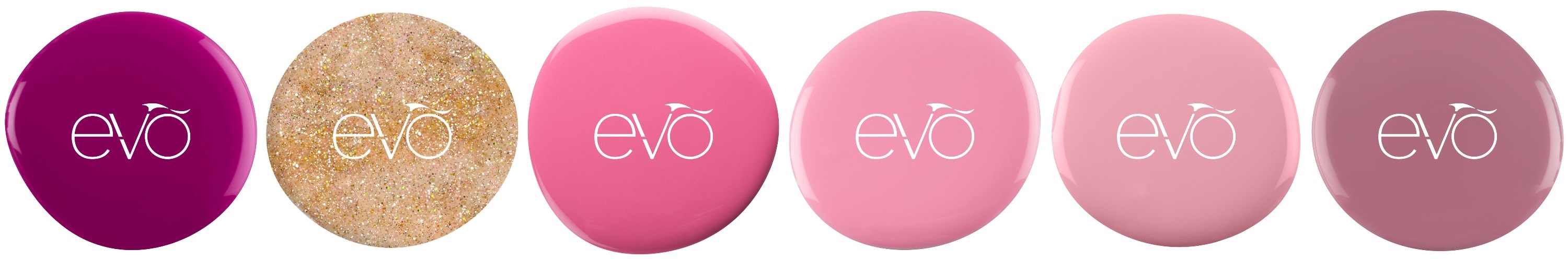 Hues in the Evo Classics Collection include nude colour with delicate gold glitter, soft dusty pink, berry pink, creamy pink, rose pink, and vibrant, pink/purple.