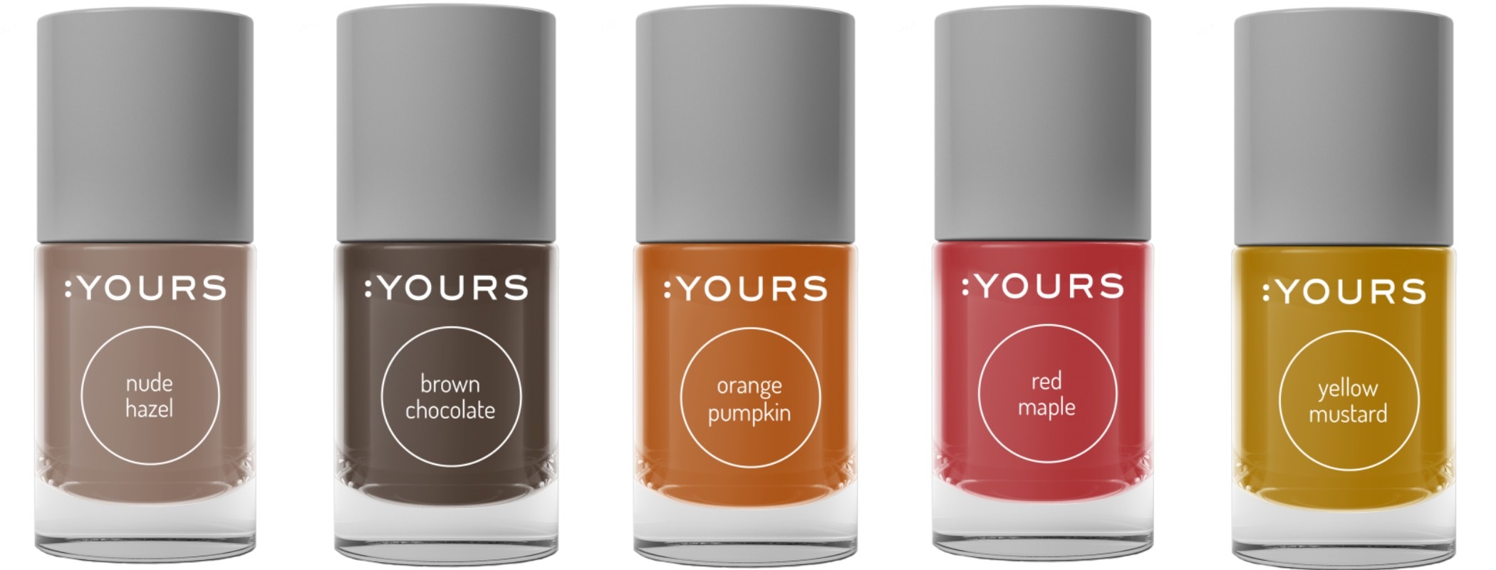 The Fantastic Fall Stamping Polish range includes five new shades, including Red Maple, Yellow Mustard, Orange Pumpkin, Nude Hazel and Brown Chocolate. The :Yours Elements collection of sparkling pigments, which give another dimension to nail art.