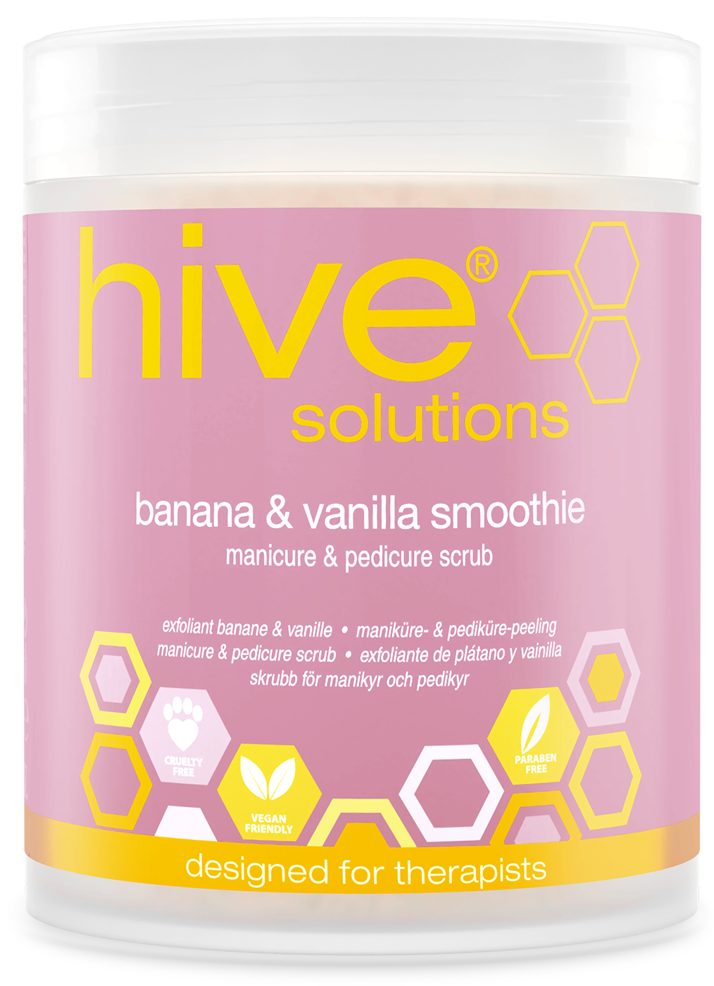 Designed to be used in both manicure and pedicure treatments, Banana & Vanilla Smoothie 500ml gently buffs away dry and dead skin cells to reveal glowing and refined skin on the hands and feet.
