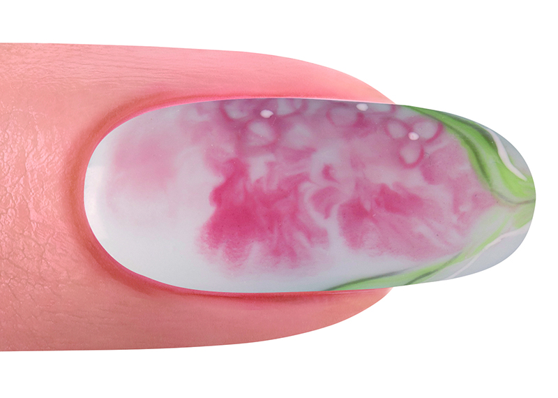 With the Mini Striper Brush, randomly apply Gelish Be Free and Keep It Simple to create a watercolour effect.