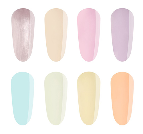 Colours (pictured right) include Fancy, pastel pink; Jello, a lavender jelly-purple shimmer; Slushy, a dewy icy-blue; Minty, a crisp pastel green; Sorbet, a creamy pastel yellow; and Lollipop, a bright peachy pastel with a coral tint.
