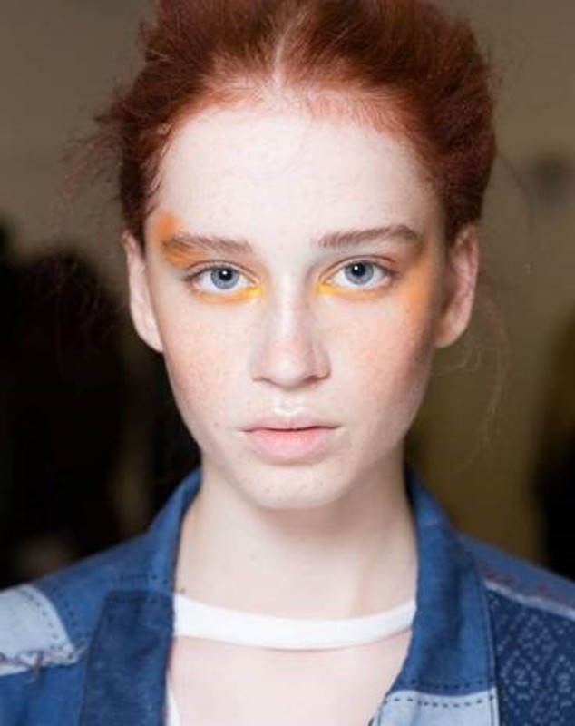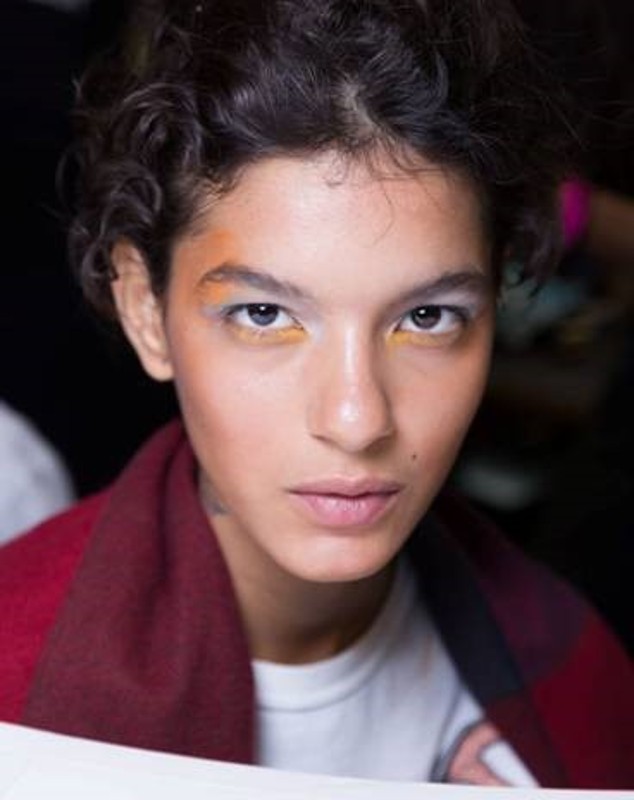 Loosely inspired by Robert Rauschenberg's Combine series (1954-64), powder white, periwinkle blue, copper, yellow and ochre were dominant in the eye makeup look, creating a pastel abstract collage. This focal eye was teamed with an extreme healthy glow, glimmering lids and lips bathed in a healthy gloss, depicting a girl who knows her own unique style, and is never afraid to show her true self – this girl knows she has the cool factor and doesn't have to try hard to convey it.