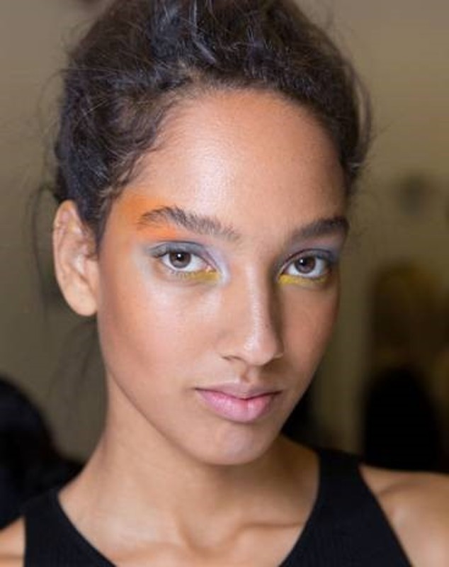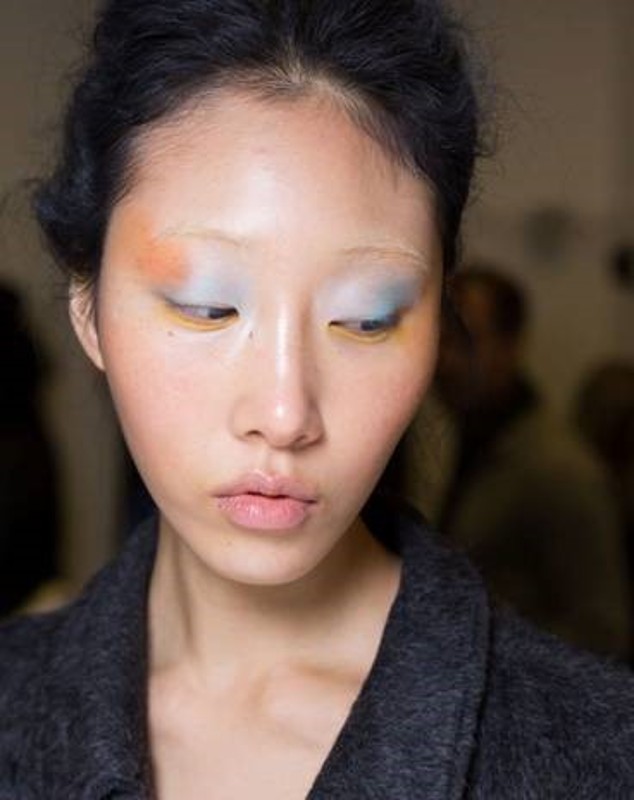 Powder white, periwinkle blue, copper, yellow and ochre were dominant, creating a pastel abstract collage on the eyes