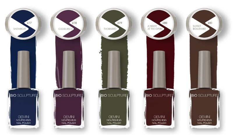 The Bio Sculpture Clapperboard Collection features five new deep shades available in BioGel and Gemini Polishes.