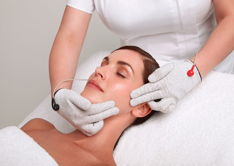 To perform the treatment, therapists wear CACI's Electro Gloves made from a conductive silver metal which transmit CACI microcurrent through the fingertips as opposed to the traditional CACI probes.