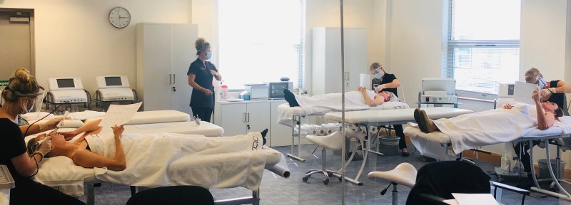 Encouraging salon professionals to pick up their CACI probes and refresh their CACI techniques, students attending courses within CACI's COVID-secure training room.