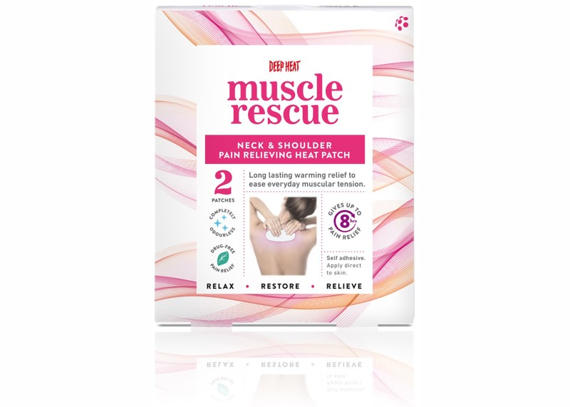 Worn under your salon uniform, the Deep Heat Muscle Rescue Neck & Shoulder Pain Relief Patch (pictured) is shaped for comfort over the neck and shoulder area, and provides up to eight hours of warming pain relief, helping to ease tense, stiff, aching, painful muscles.