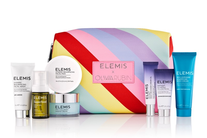 Skincare and spa experts, Elemis, have partnered with designer Olivia Rubin to launch a collection of face and body essentials housed in exclusive designer bags with her famous rainbow prints.