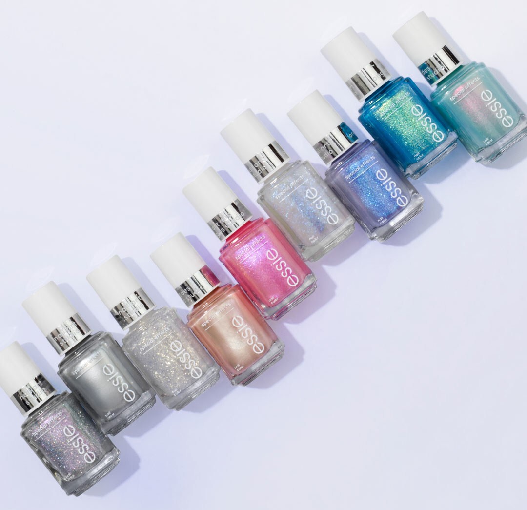 Essie Nail Art Studio Special Effects includes nine unique nail finishes comprising flaky pearls, pixel pearls and satin chromes with holographic and light-reflecting finishes. They can be worn over bare nails, layered or over any Essie colour.