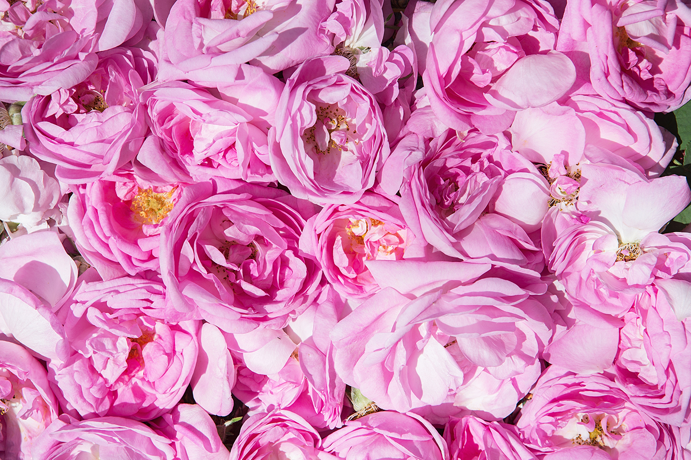 Rose essential oil is extracted through steam distillation. Large stills, traditionally made of copper, are filled with the roses and water. The still is then fired for an hour or so. The vapourised water and rose oil leaves the still, enters a condensing apparatus, and is then collected in a flask. This yields a very concentrated oil. Water condenses with oil and is then drained off and distilled again. The two collections, once combined, make the final rose essence, or Rose Otto essential oil.