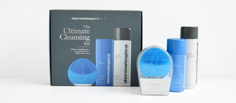 The Dermalogica X Foreo Ultimate Cleansing Kit features the Foreo Luna 2 Mini, new Dermalogica Milkfoliant and Dermalogica Special Cleansing Gel.