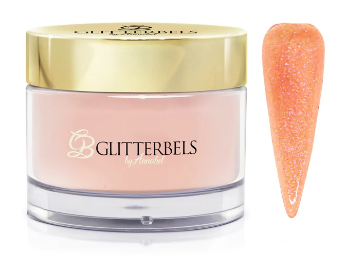 If you are looking for something with a bit of added sparkle, the shade “Juicy Peach” from the Glitterbels Glitter Acrylic collection (pictured left) is just what you need. This is a gorgeous peach shade with a silver sparkle.