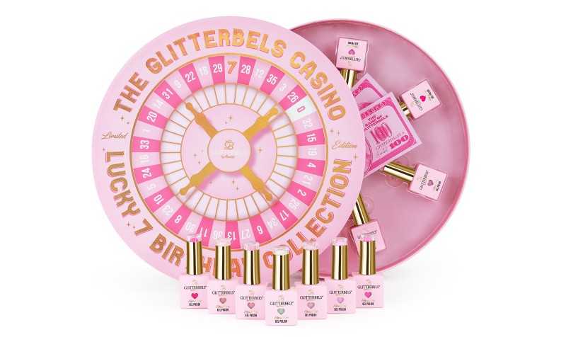With an instantly recognisable Glitterbels pink theme, the celebratory collection includes Casino Celebrations, a hot pink; Feeling Lucky, a deep fuchsia pink,; Royal Flush, a blush pink; Pop The Bubbly, a holographic pink/white glitter; Jackpot, the perfect pink; Birthday Suit, an elegant nude pink; and Birthday Candles, as delicious as pink birthday cake frosting.