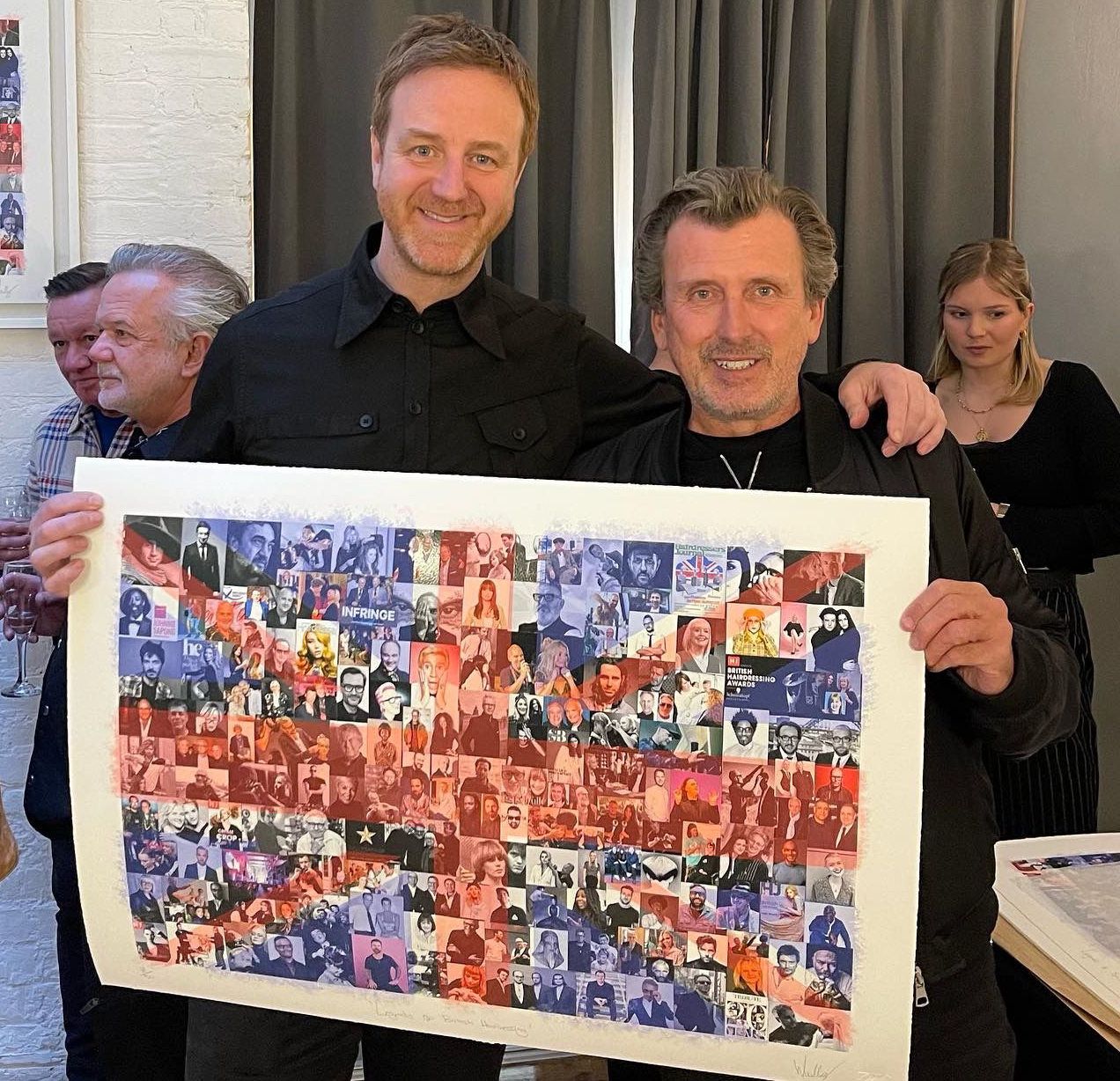 Electric Hair's Mark Woolley (left) is pictured with the Legends of British Hairdressing print with Mark Hayes, Creative Director at Sassoon.