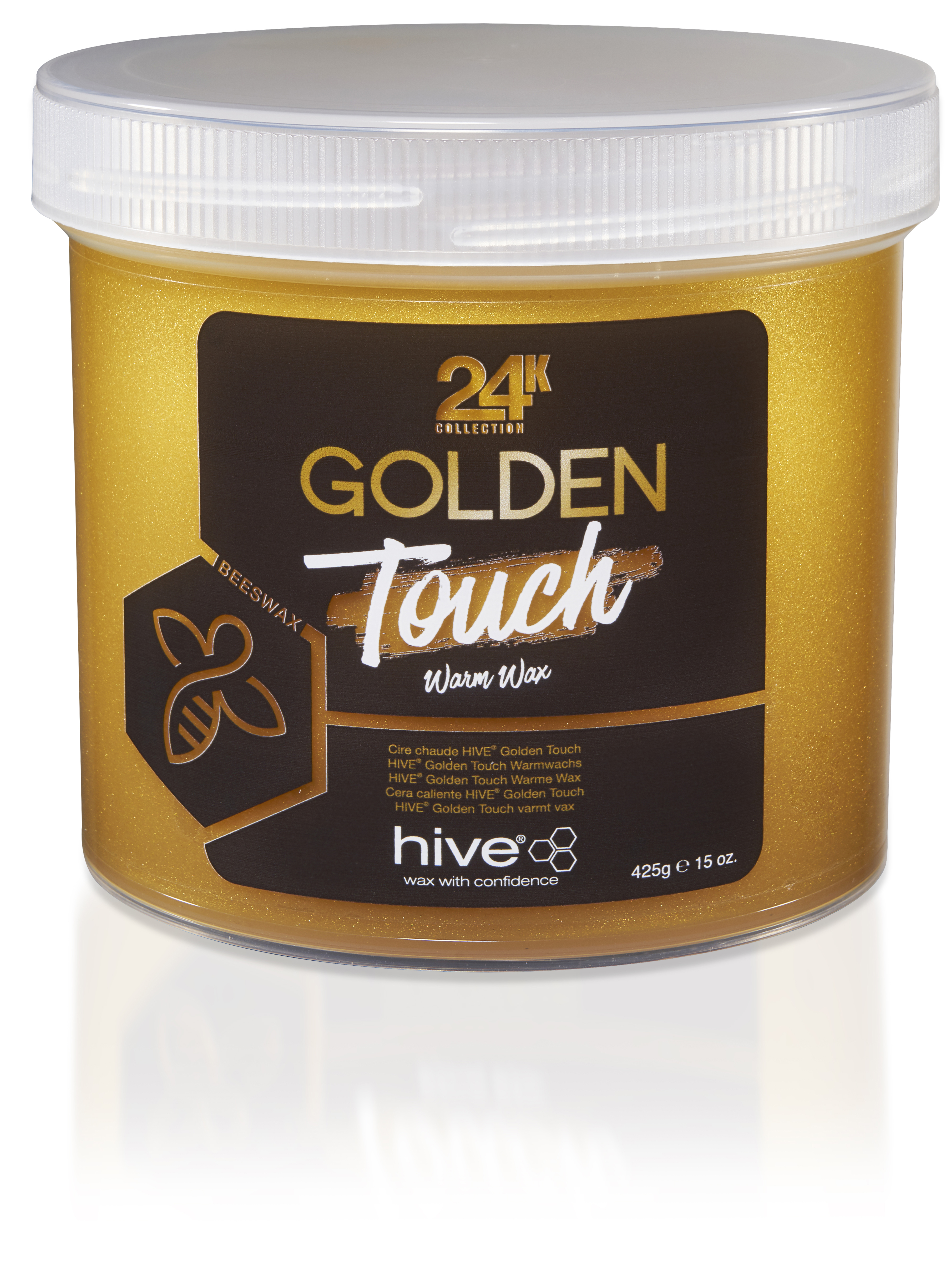 Hive® Golden Touch Warm Wax is a luxurious and refined all-purpose warm wax with a golden shimmer. It is formulated with active ingredients including pure White Beeswax, rich in Vitamin D, to deeply moisturise the skin, as well as deliver therapeutic and anti-inflammatory properties.