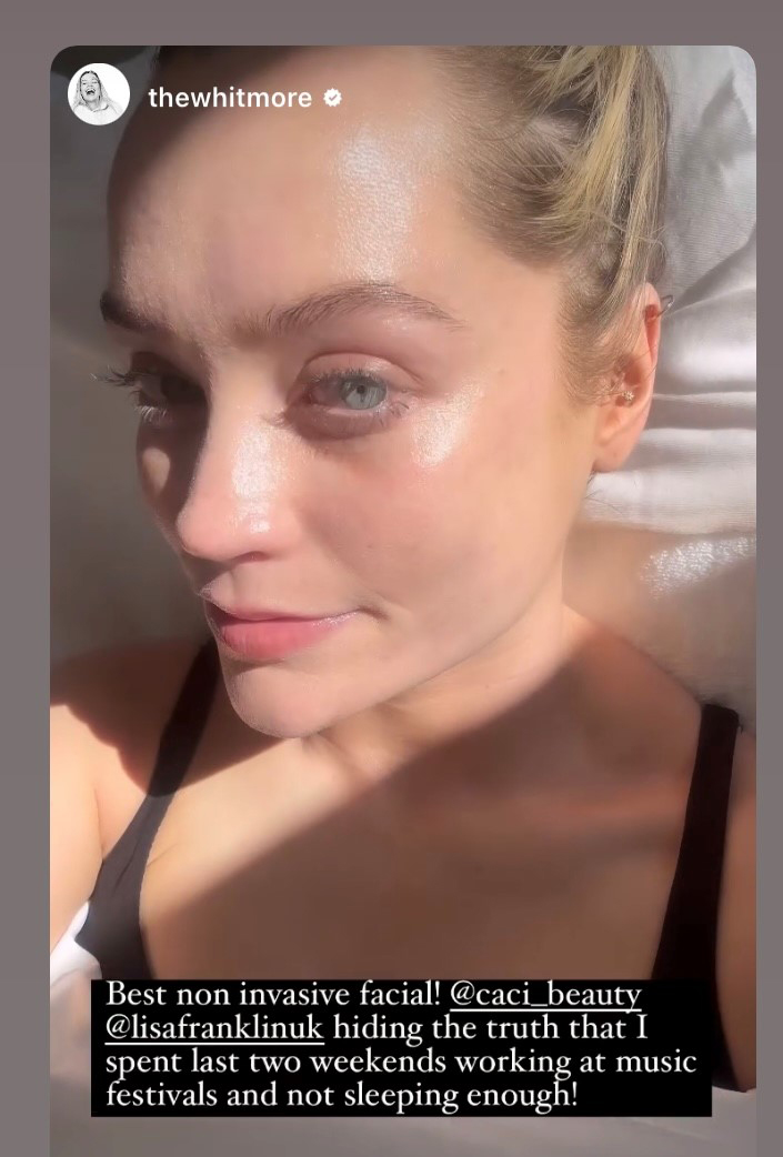 Through her social media accounts, Laura said: “Best non-invasive facial. Hiding that truth that I spent the last two weekends working at music festivals and not sleeping enough.