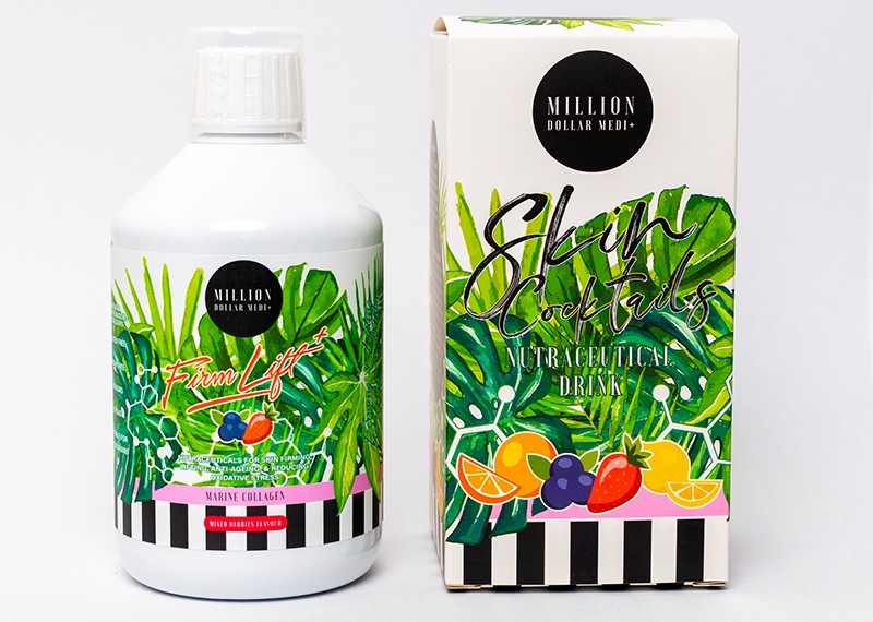 "Million Dollar Medi+ Cocktails have been designed and created to supplement and support our, in clinic Million Dollar Facials and Medi+ home cosmeceutical range. These daily cocktails are clinically evidenced and will support both wellbeing and appearance. Some molecules are too large to penetrate our skin or are not water soluble, so it is important that we have sufficient nutrients and building blocks available to support a younger, healthier appearance. Some of these nutrients are often difficult to factor into our diets so by having the drinks this makes it a lot easier to consume."