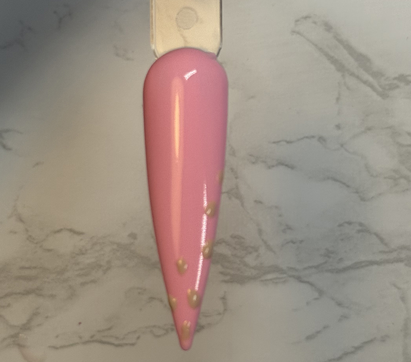 Step #2. Using your dotting tool or detail brush, apply random patches of Dunes gel polish leaving space in between. This will create the inside colour of your leopard print. Cure for 60 seconds.