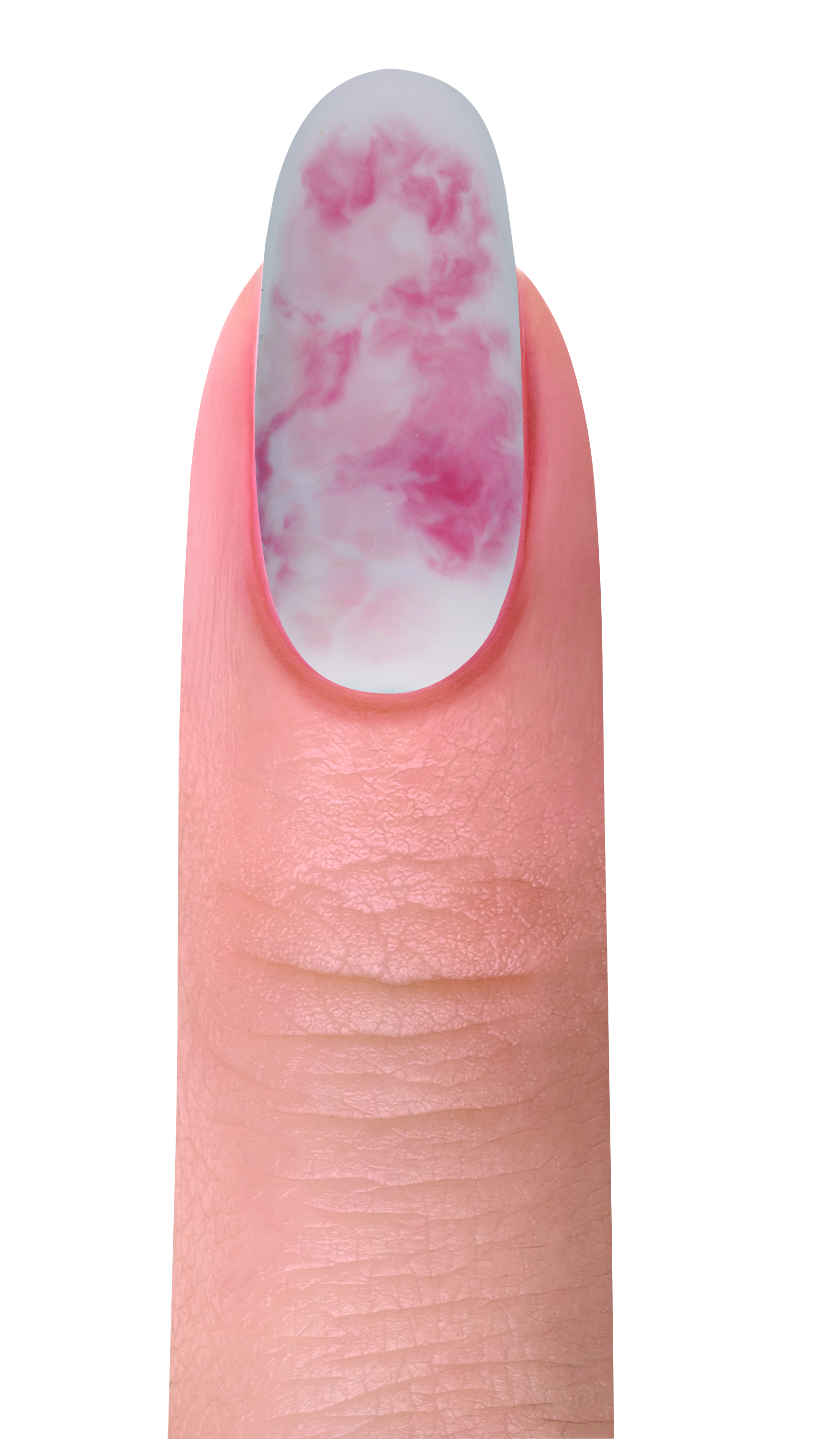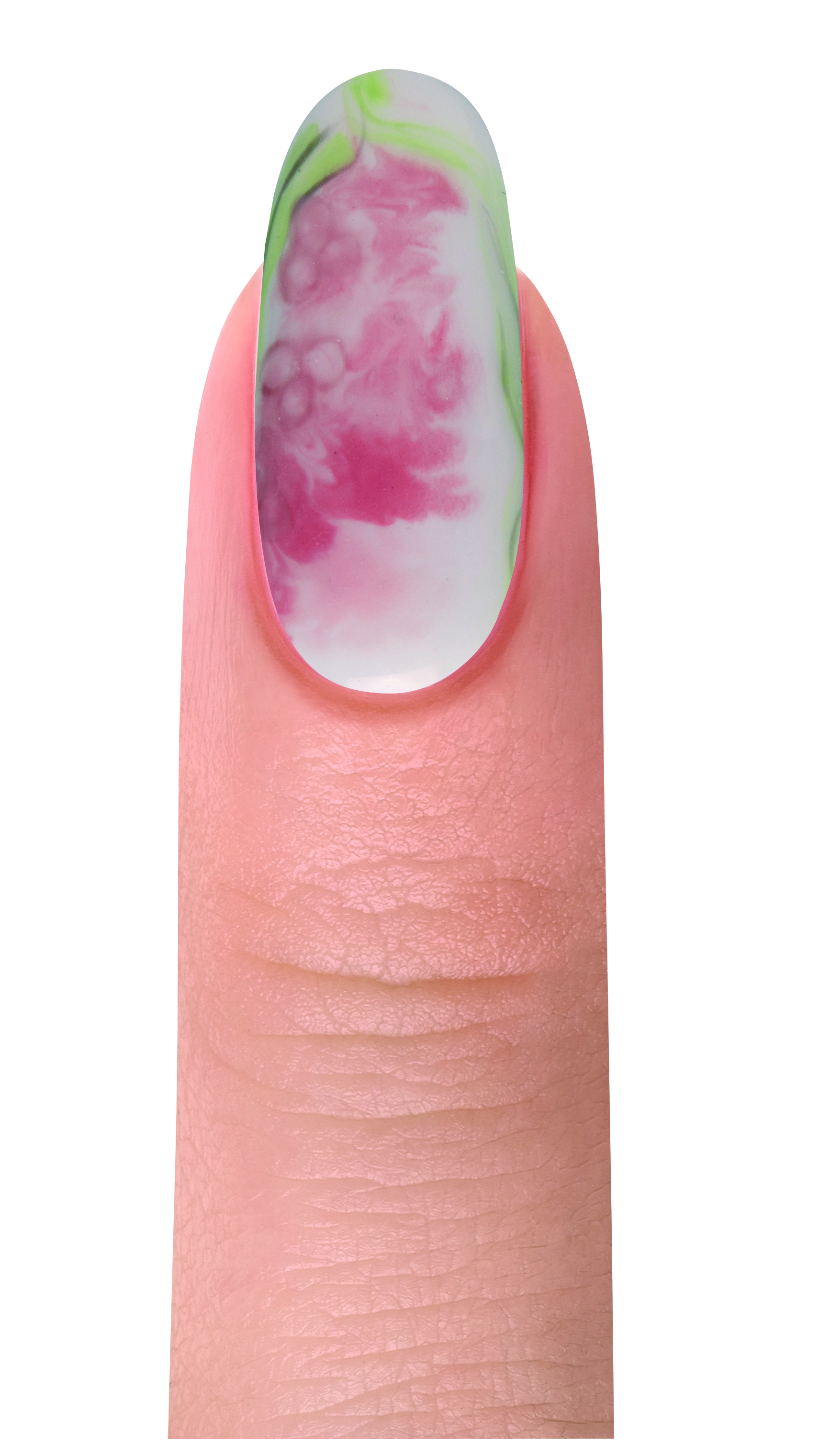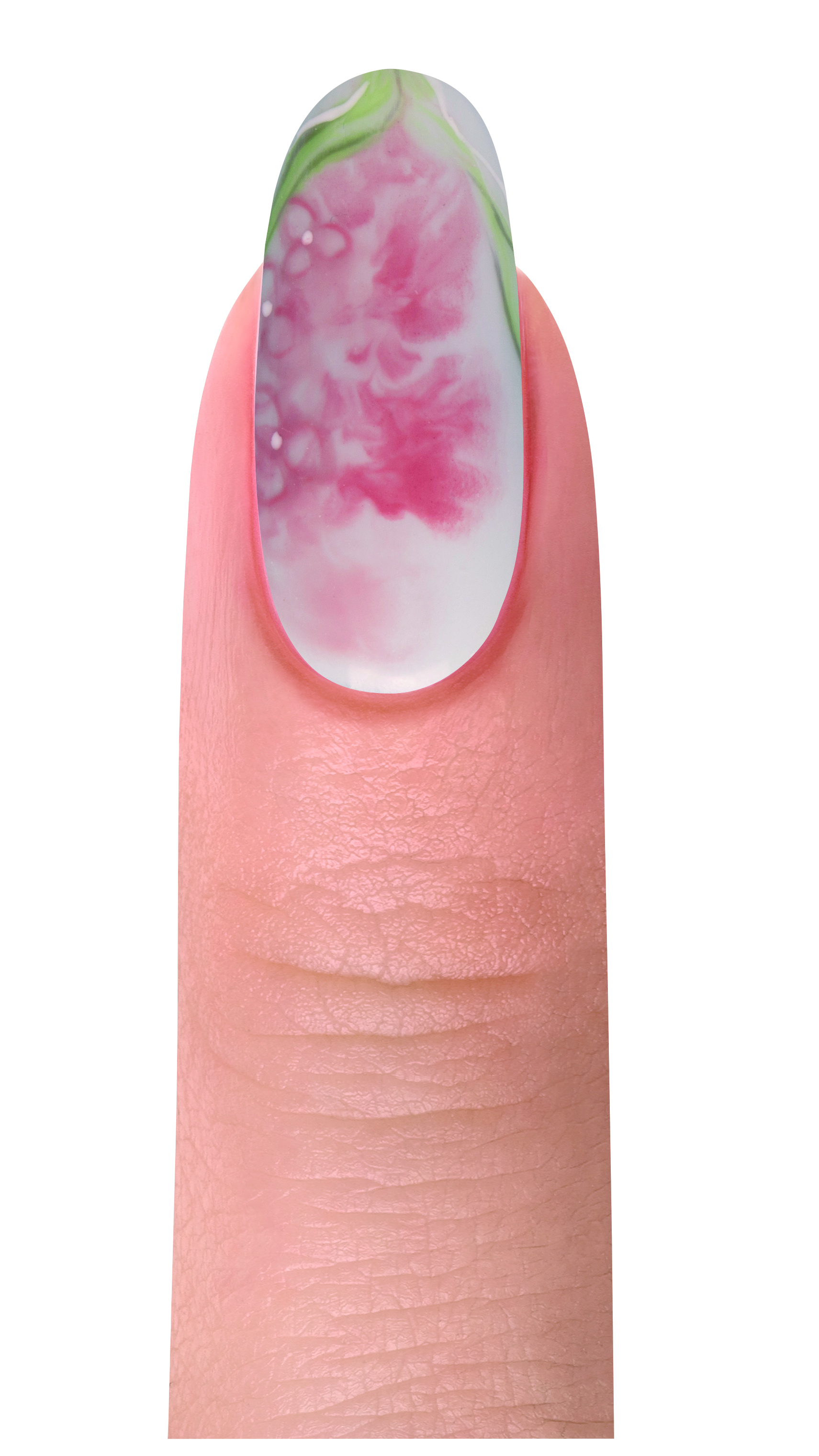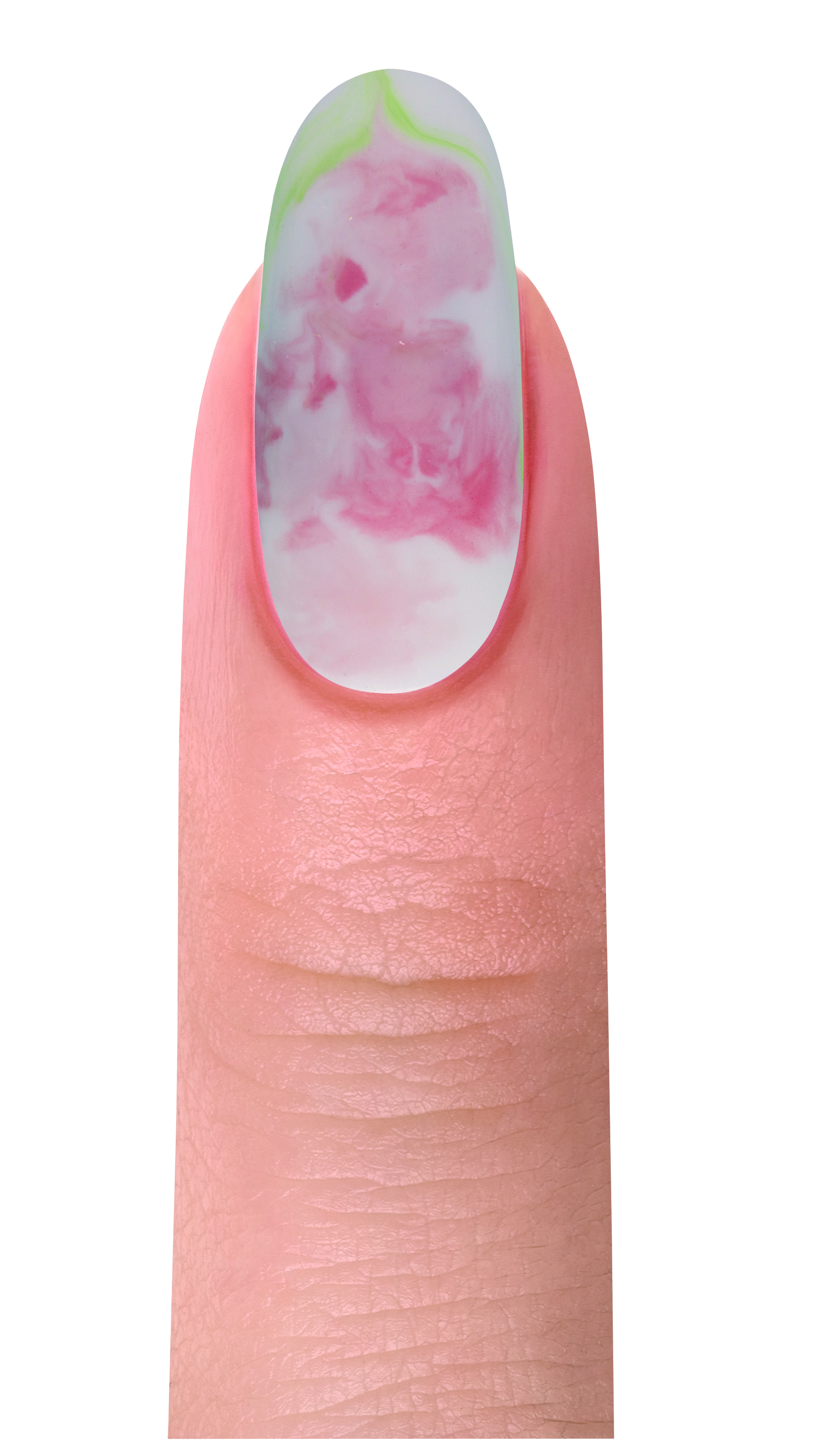 With the Mini Striper Brush, randomly apply Gelish Be Free and Keep It Simple to create a watercolour effect.