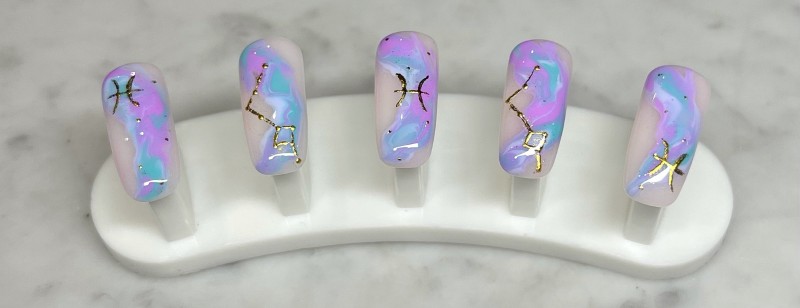 With March being the month of the Pisces, Salon System nail expert Rosanna Hatherell has created some gorgeous new nail art, inspired by this watery constellation.