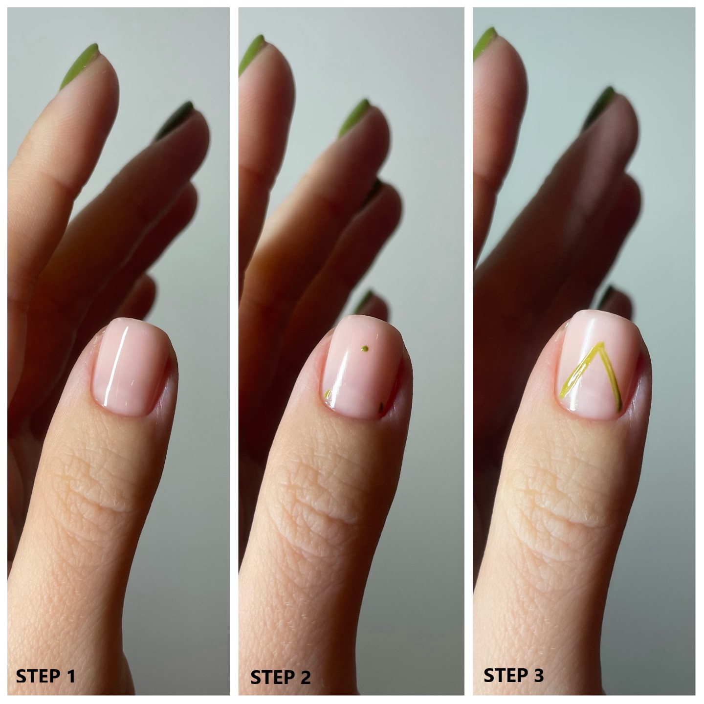 Using a fine liner nail art brush, draw two lines to make the triangle.