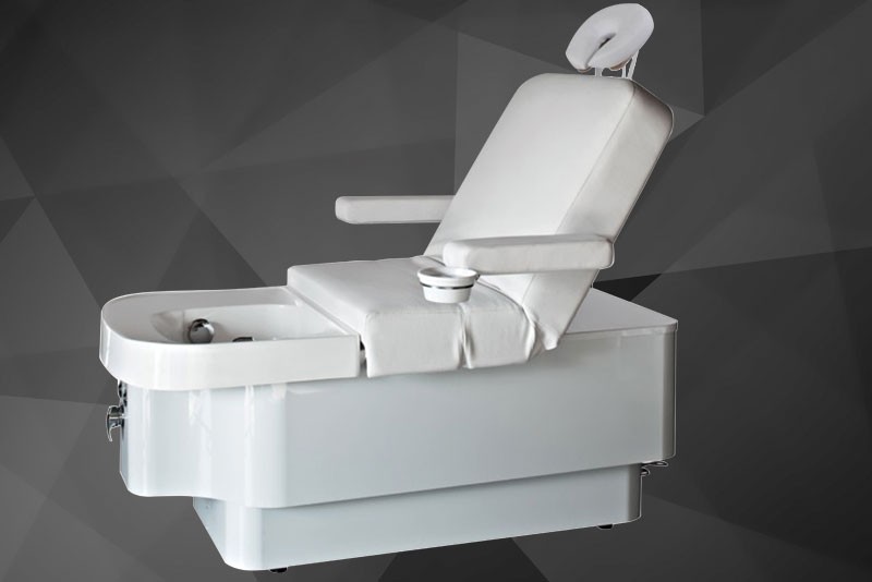 The Nilo All In One Multi-Function Treatment Bed (pictured top) is suitable for facial, massage, hair removal, pedicure, manicure treatments and reflexology treatments. With three motors, it has an electric backrest with height and knee adjustments, and comes with an external headrest and removable armrests. The mattress is covered in soft PU, which is fireproof and oil resistant. It also comes with a pipe-free hydro massage basin for pedicure treatments.