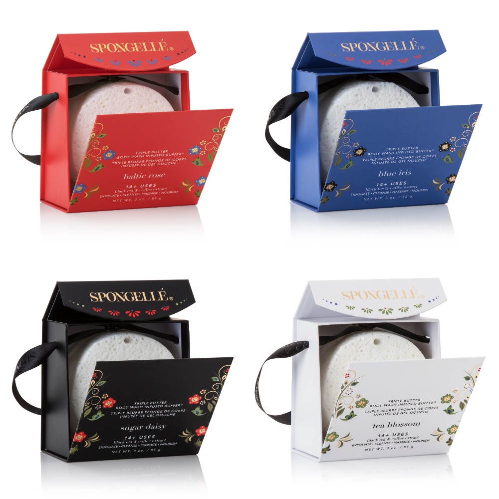 The Romanticism Collection of four new buffers is infused with triple butter body wash delivering rich, creamy suds for up to 14 washes. In Baltic Rose, Tea Blossom, Blue Iris and Sugar Daisy fragrances, each ensures your bath and shower time become a luxurious experience. The Romanticism Collection is inspired by the folk-art movement of 18th century Eastern Europe, with each Spongellé buffer packaged in a pretty box making a perfect gift.