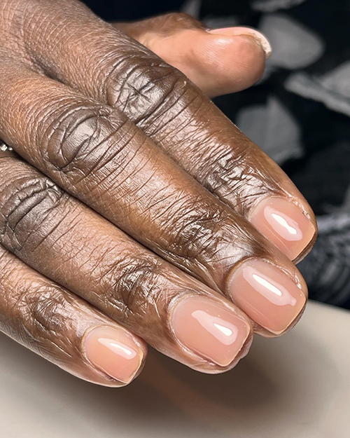 “Healthy, hydrated nails are essential to carry off a sheer, nude finish,” explains Sara Pinto, Product Director at Andreia Professional.