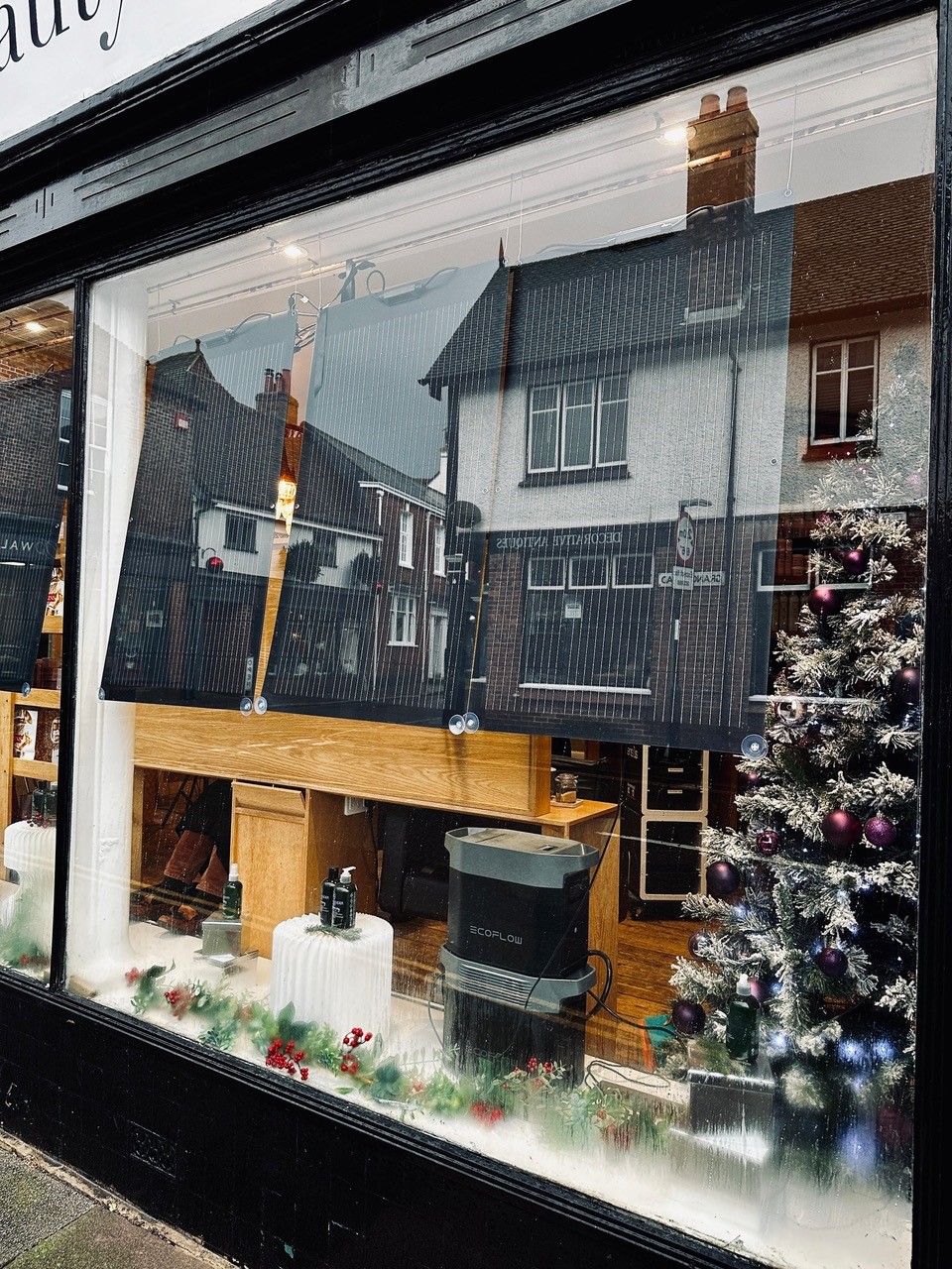Due to its location in the ancient market town of Midhurst, Q were not able to go down the traditional roof-mounted panels but hanging panels in the window offered an innovative solution.