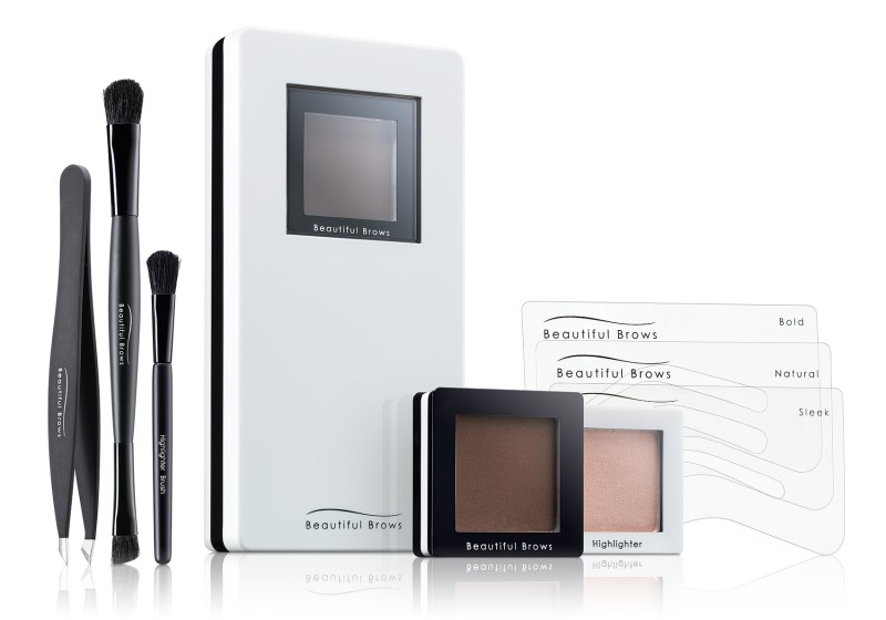 Each kit contains smudge-proof eyebrow powder, easy-to-use eyebrow shapers, an expert duo applicator brush, illuminating eyebrow highlighter, highlighter brush, soft grip tweezer and a magnifying mirror; all presented in a handy compact case, unique to Beautiful Brows.