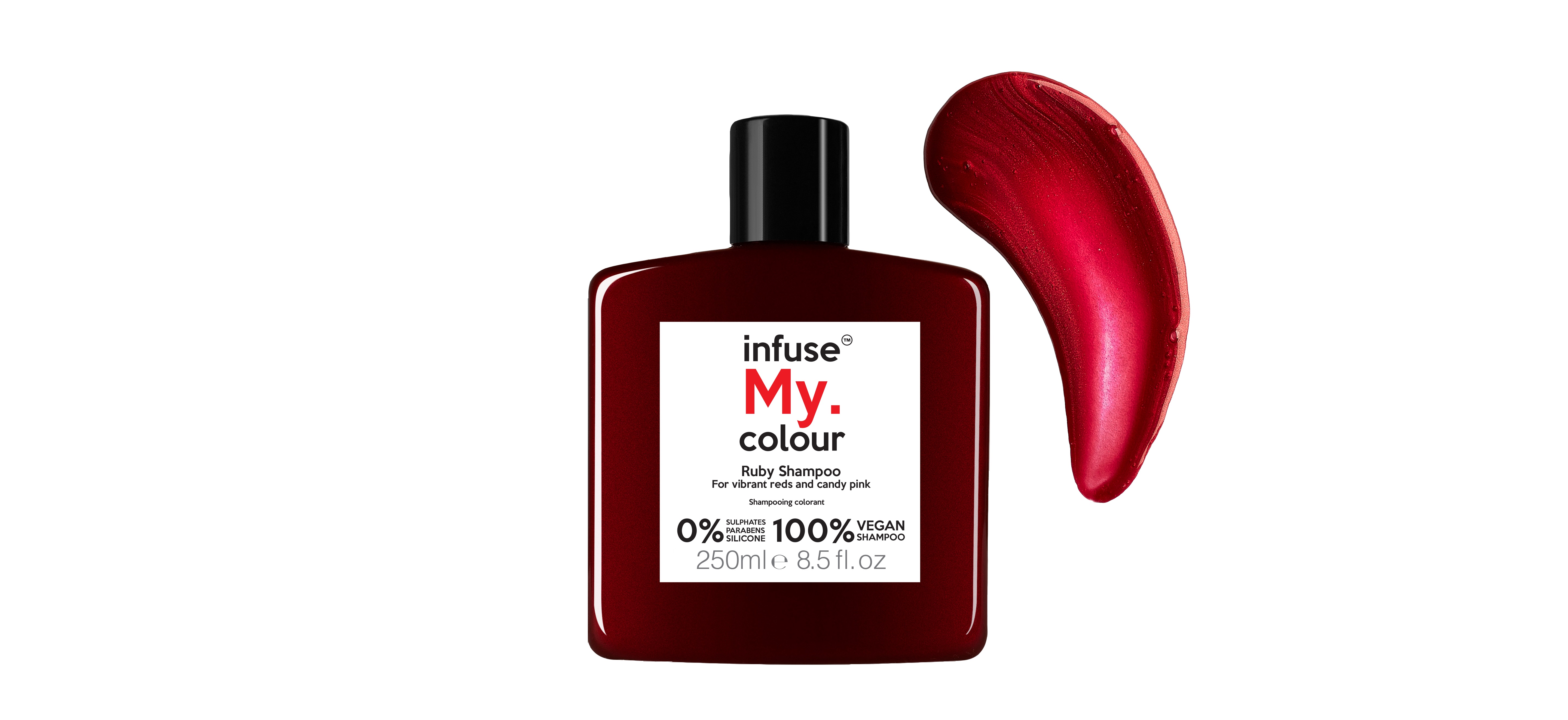 Tired of your hair colours fading between salon appointments? Created to tackle this specific problem INFUSE MY. COLOUR SHAMPOO is a colour-infusing shampoo which delivers colour refreshment with an instant effect.