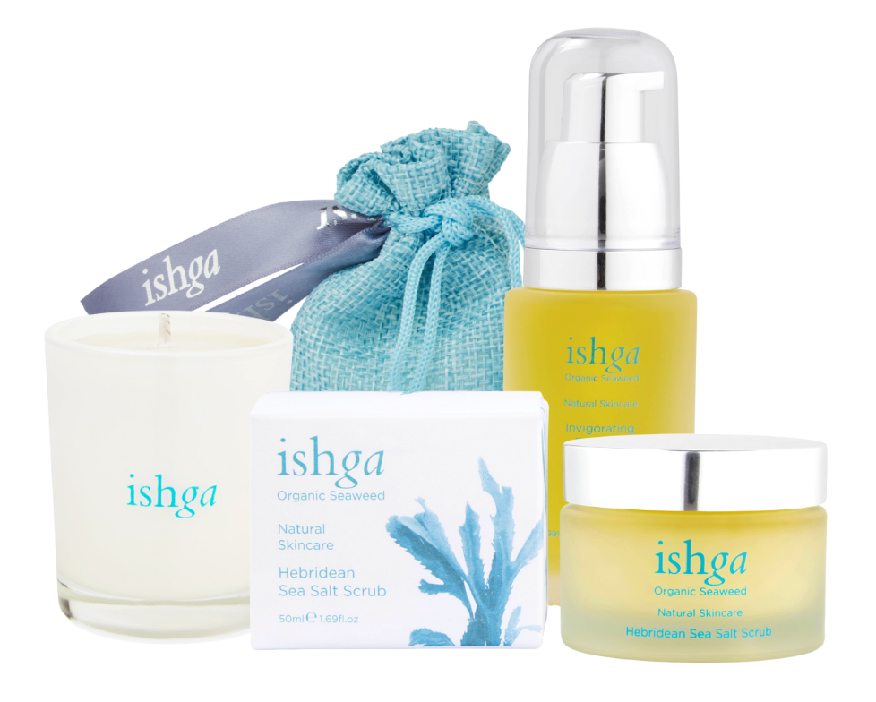 ishga products are formulated with healing spring water and sustainably sourced Scottish Hebridean seaweed.